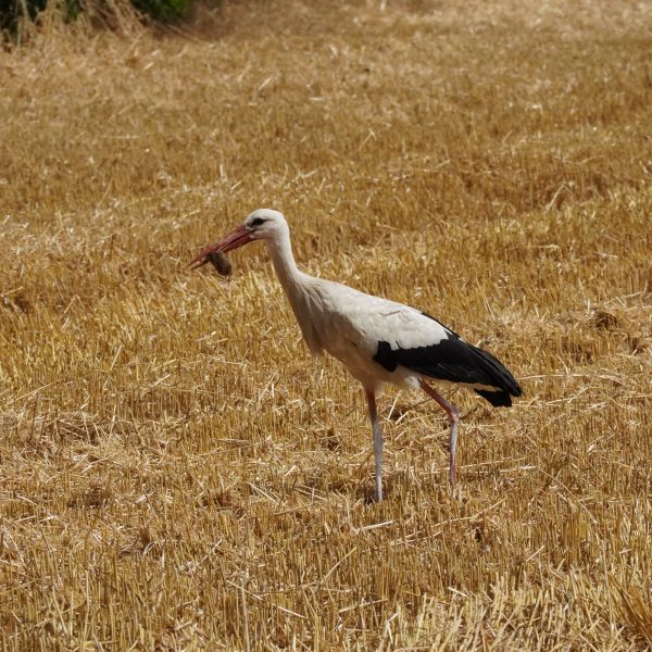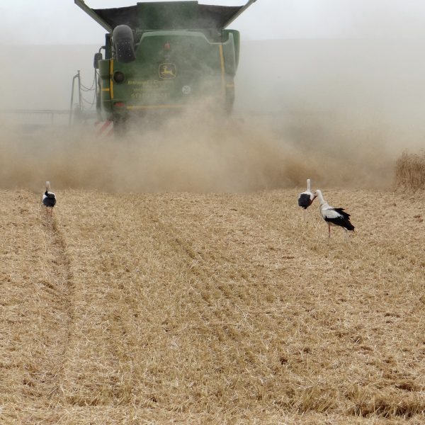 Es konnte beobachtet werden, wie der Weißstorch die Ernte zu nutzen weiß, denn dabei werden Regenwürmer, Insekten und Kleinsäuger aufgescheucht und bieten dem Storch kurzzeitig eine reichhaltige Nahrung.